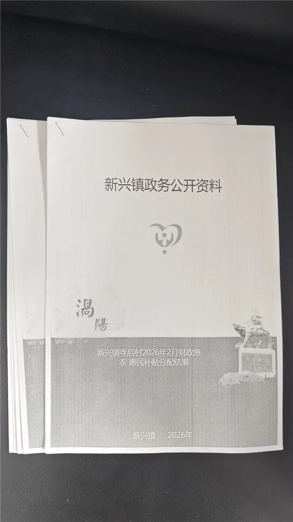新兴镇寺后村2026年1-2月份财政惠民惠农补贴公示、资料留存