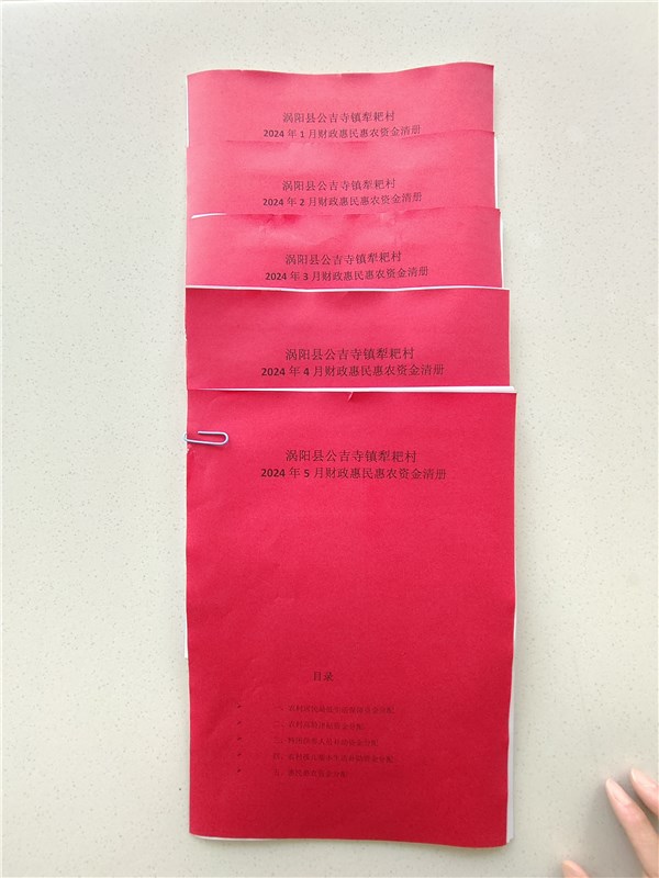 涡阳县公吉寺镇犁耙村2024年1-5月份财政惠民惠农补贴公示资料留存