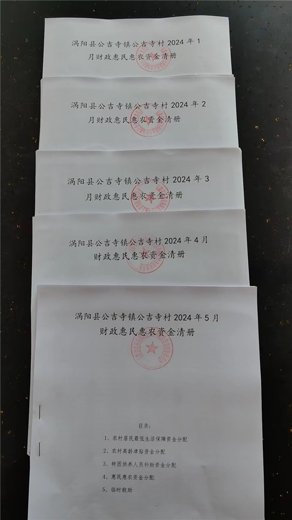 涡阳县公吉寺镇公吉寺居委会2024年1-5月份财政惠民惠农补贴公示资料留存