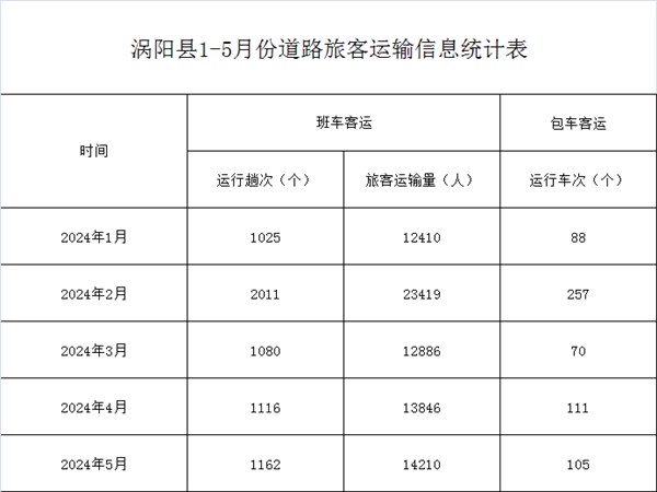 涡阳县1-5月份道路旅客运输信息统计表