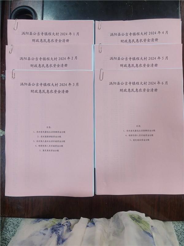 涡阳县公吉寺镇程大村2024年1-6月份财政惠民惠农补贴公示资料留存