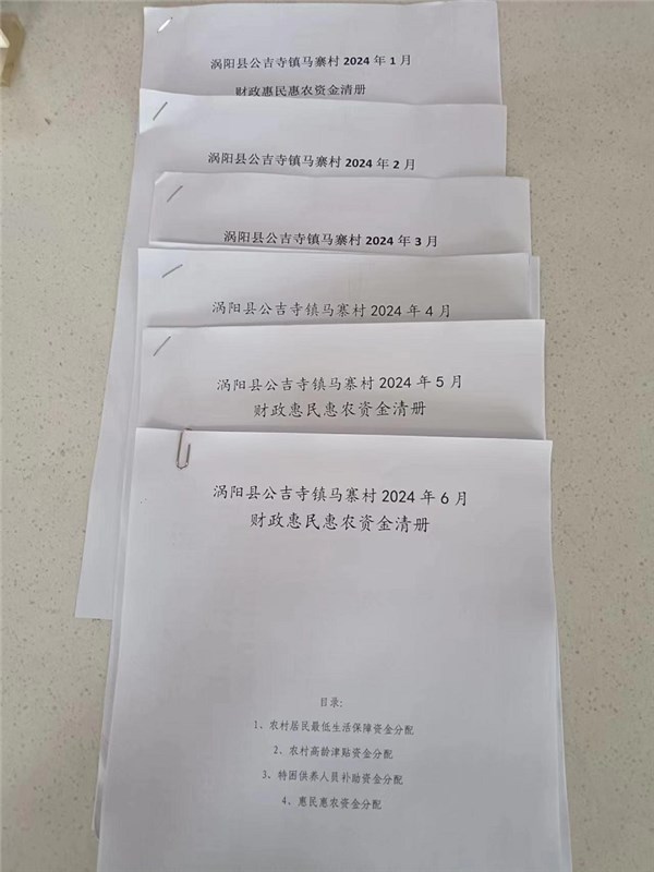 涡阳县公吉寺镇马寨村2024年1-6月份财政惠民惠农补贴公示资料留存
