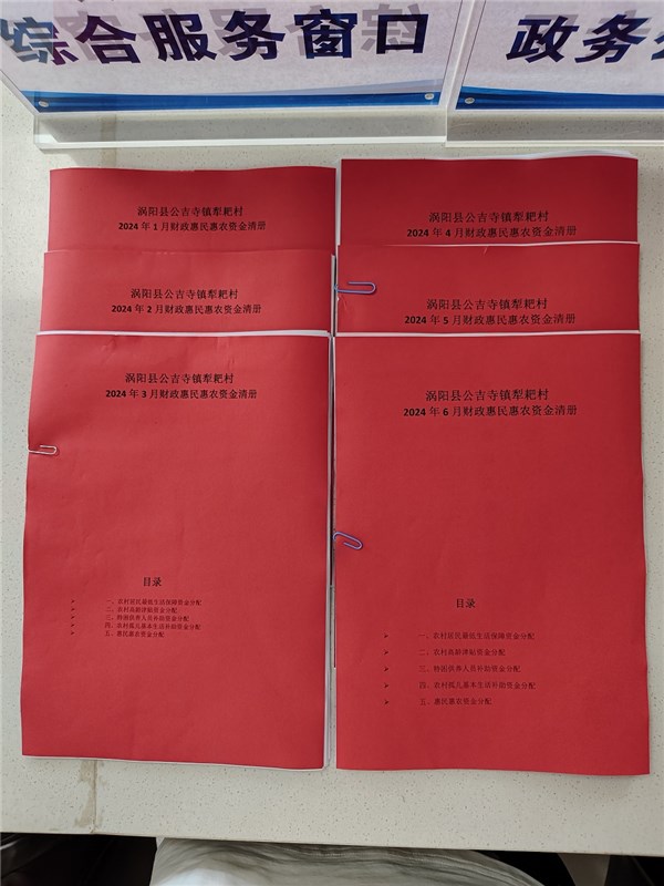 涡阳县公吉寺镇犁耙村2024年1-6月份财政惠民惠农补贴公示资料留存