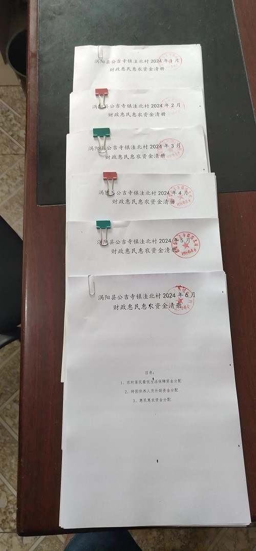 涡阳县公吉寺镇洼北村2024年1-6月份财政惠民惠农补贴公示资料留存