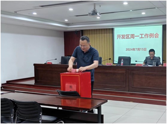 为弘扬“扶危济困、乐施好善”的传统美德,7月15日,涡阳开发区在周工作例会上开展“慈善一日捐暨爱心助学”活动。