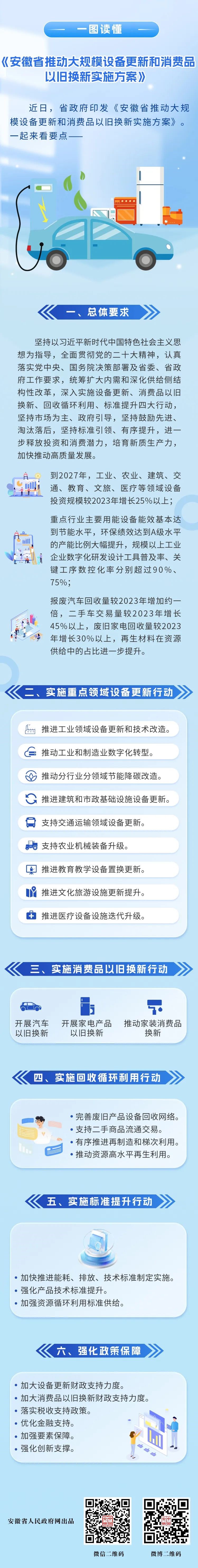 一图读懂《安徽省推动大规模设备更新和消费品 以旧换新实施方案》