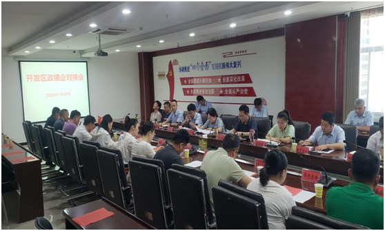 7月30日,涡阳开发区召开2024年度政银企座谈会,开发区党工委委员、管委会副主任张先风主持会议,开发区管委会副主任盛珊珊、党工委委员王宁宁出席会议,各金融机构、园区企业代表共20余人参加会议。