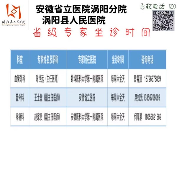 安徽省立医院涡阳分院(11月23日 )专家坐诊信息