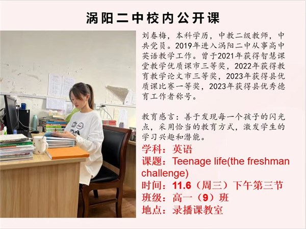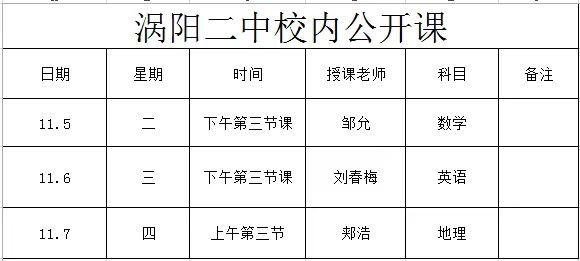 涡阳二中校内公开课安排(2024.11.4-2024.11.10)