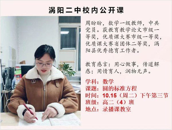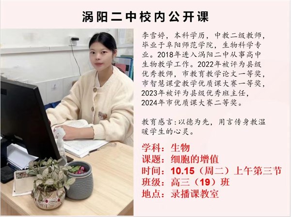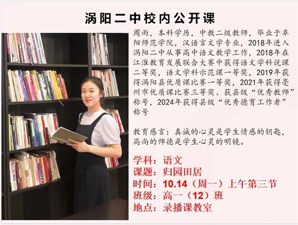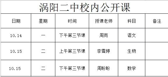 涡阳二中校内公开课安排(2024.10.14-2024.10.20)