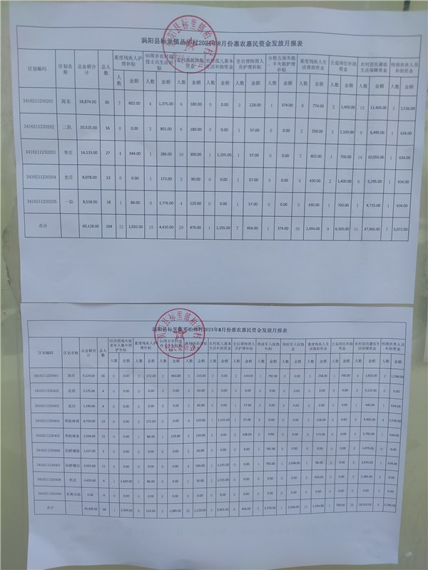 标里镇前李村2024年8月惠民惠农补贴公式和资料留存