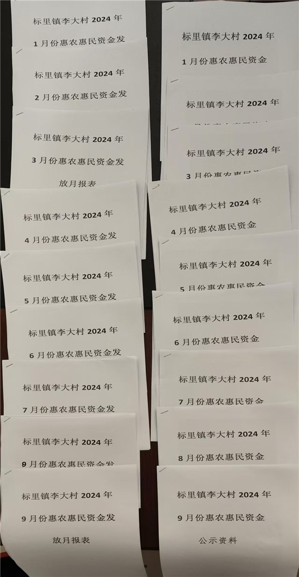 标里镇李大村2024年9月惠民惠农补贴公式和资料留存情况