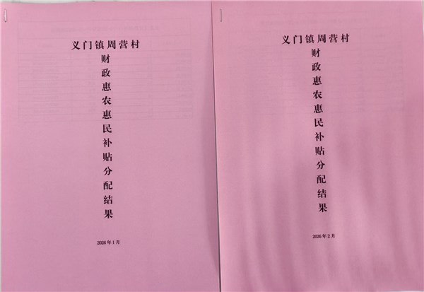 义门镇周营村2026年2月份惠农惠民补贴公示、资料留存情况