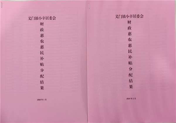 义门镇小辛居委会2026年2月份惠农惠民补贴公示、资料留存情况