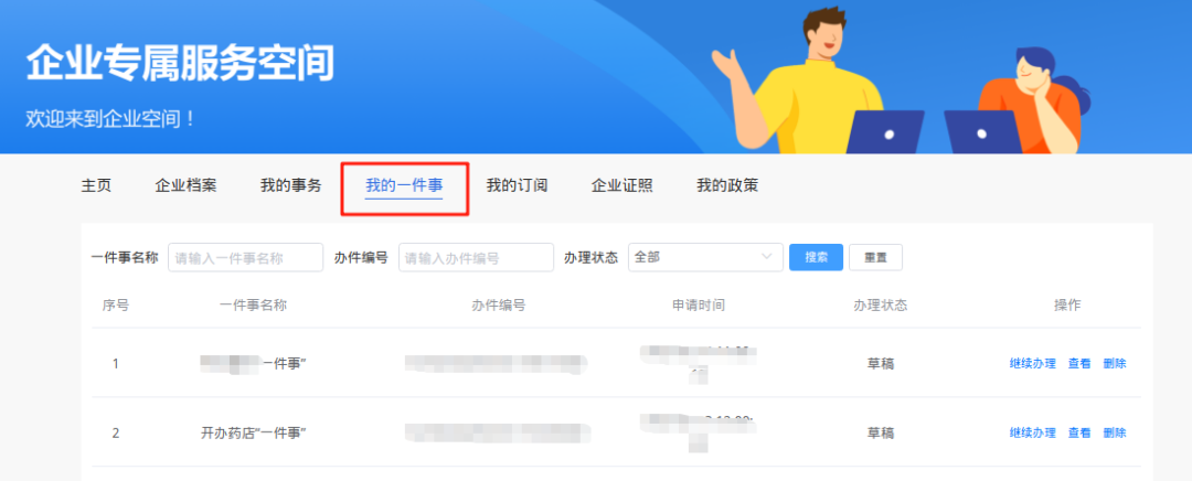 9、已提交的办件可在“企业空间-我的一件事”中查看办件进度状态。