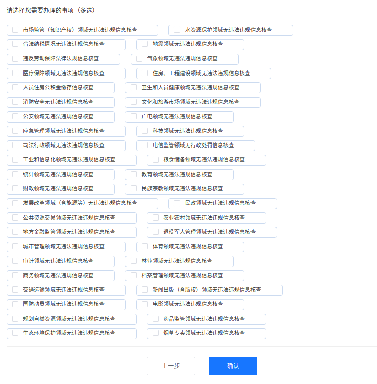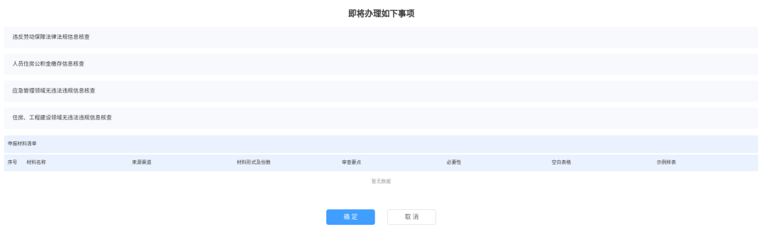 2、进入情形引导页,根据实际办理需求选择对应的选项,点击【确认】按钮,进入事项、材料确认页面。