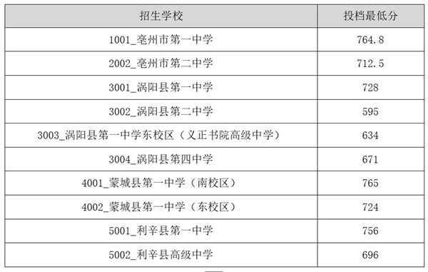 2025年亳州市高中统招投档最低分公布