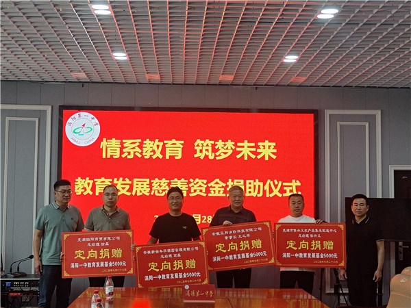 涡阳县工商联组织涡阳籍优秀企业家向涡阳一中教育发展基金捐助资金。