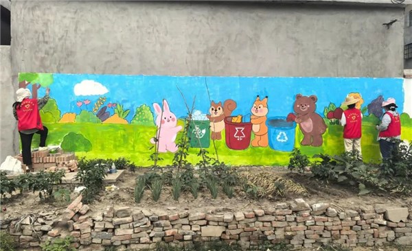 志愿者们以墙为介、以笔为媒,怀着对乡村建设的热情和对艺术的热爱,组成了一支专业素养高、执行力强的团队。到达胡碱村后,他们迅速与当地村委会对接,深入了解村庄的文化特色、发展规划以及村民的需求,以此为基础确定墙画主题与内容。