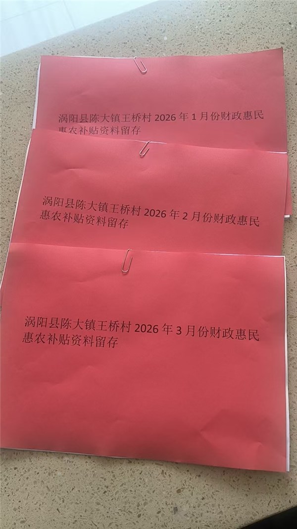 陈大镇王桥村2026年1-3月惠民惠农补贴公示和资料留存情况