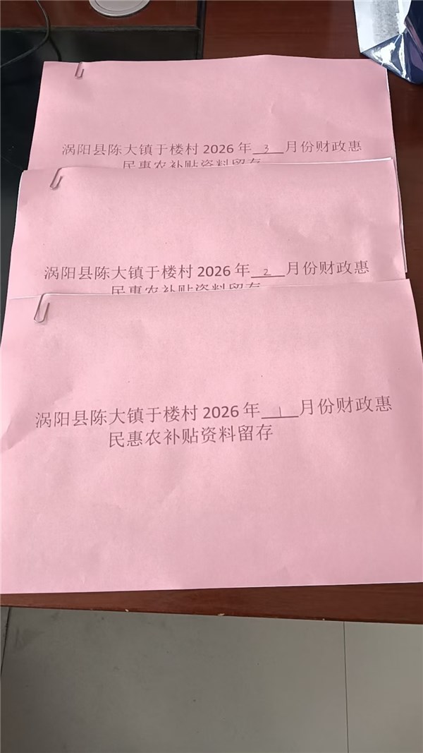 陈大镇于楼村2026年1-3月惠民惠农补贴公示和资料留存情况