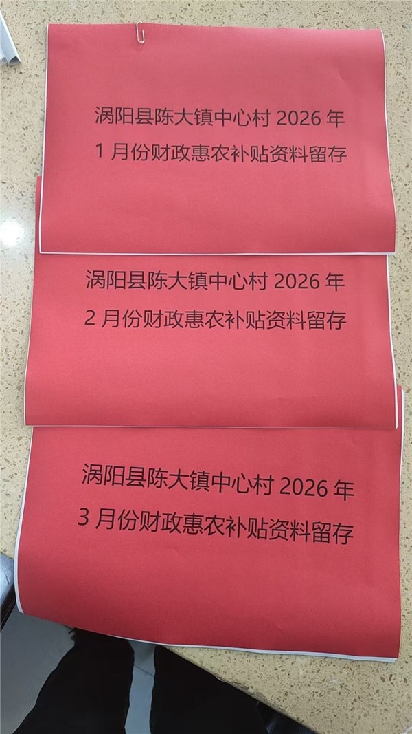 陈大镇中心村2026年1-3月惠民惠农补贴公示和资料留存情况