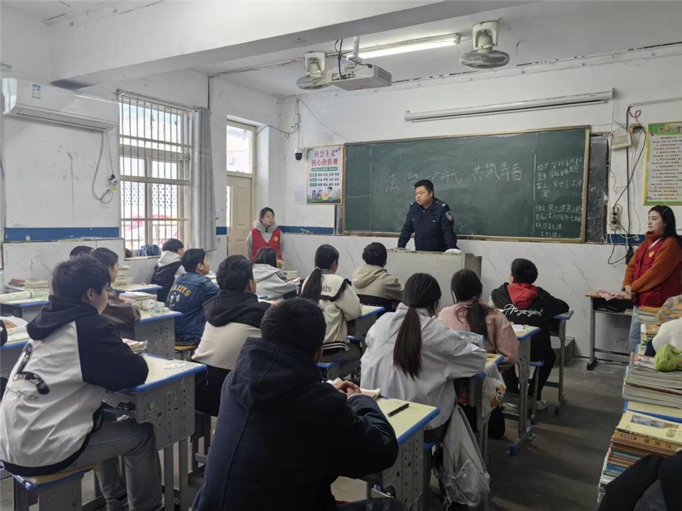 2025年10月20日,新安社区联合驻村辅警走进网格内育才中学,为初一年级学生开展“法治护航·共筑青春”主题普法宣传活动。针对初一学生青春期自我意识增强、社会接触面拓宽的特点,活动聚焦青春期安全防护、校园欺凌治理、网络风险应对等核心问题,用“案例+互动”的形式,为同学们送上一堂贴合成长需求的法治教育课。