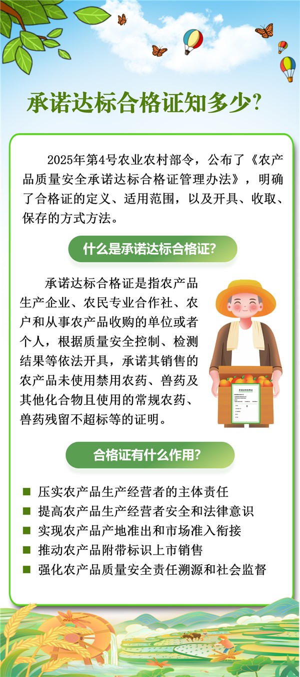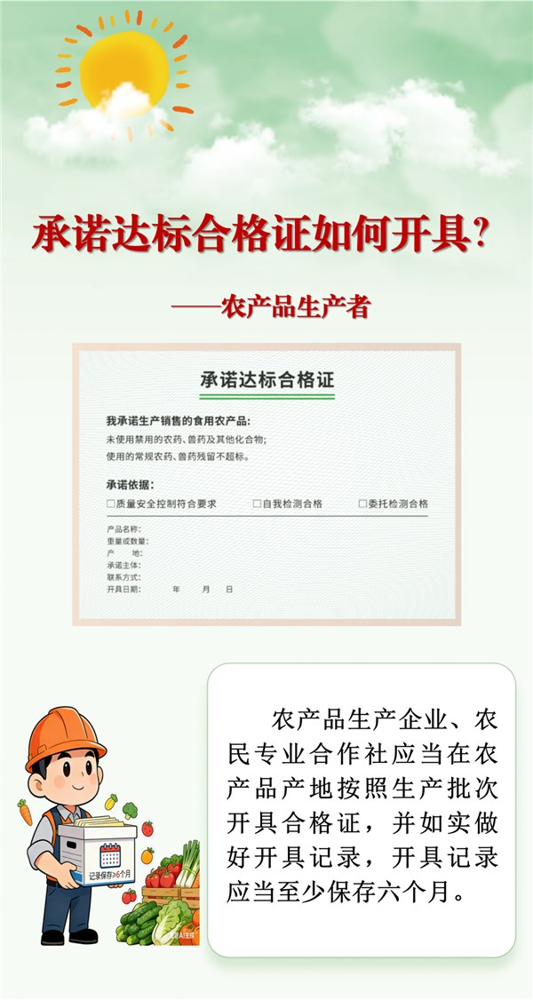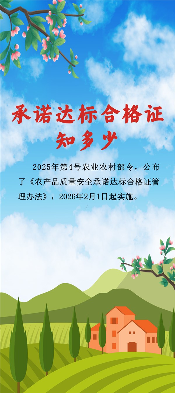 2025年12月2日,农业农村部部长韩俊签发2025年第4号农业农村部令,公布了《农产品质量安全承诺达标合格证管理办法》,将于2026年2月1日起实施。长图解读供参考。