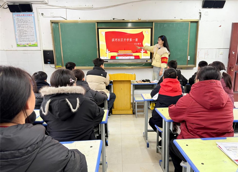 滨河社区组织志愿者走进辖区小学,开展以“安全教育”为主题的“开学第一课”活动,为学生们送上了一堂生动实用的安全知识课。