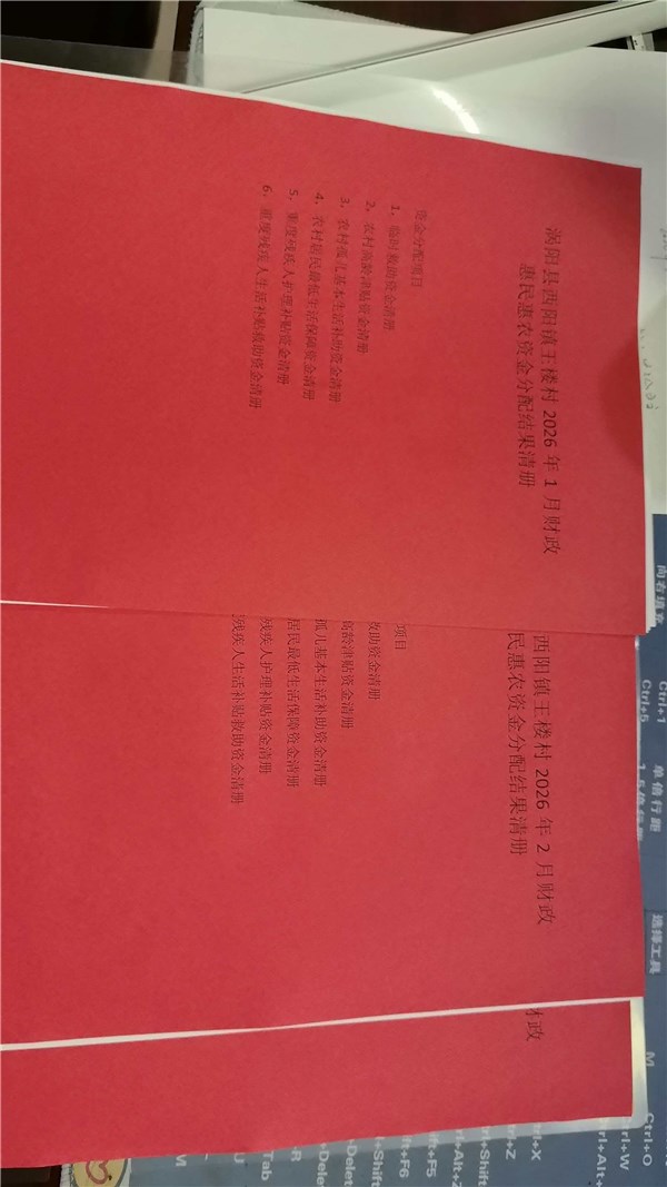 西阳镇王楼村2026年1-2月份财政惠民惠农补贴公示、资料留存情况