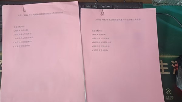 西阳镇文庙村2026年1-2月份财政惠民惠农补贴公示、资料留存情况