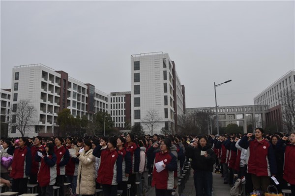 动员演讲结束后,教师宣誓环节温情启幕。全体高三教师高举右拳,誓言铿锵有力,承诺将以匠心育人、以坚守护航,用爱心、耐心与责任心,做学子们高考冲刺路上最坚实的后盾,与学子们并肩作战、共赴荣光。