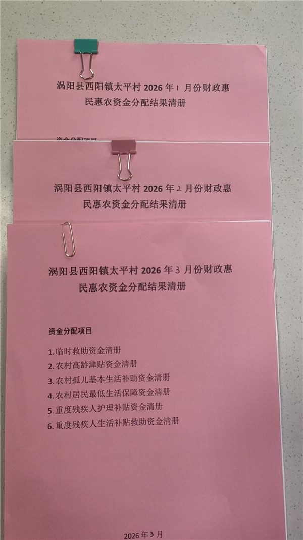 西阳镇太平村2026年1-3月份财政惠民惠农补贴公示、资料留存情况