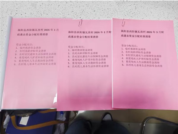 西阳镇瓦房村2026年1-3月份财政惠民惠农补贴公示、资料留存情况