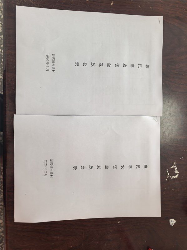 涡阳县楚店镇三里赵村2026年2月份财政惠民惠农补贴