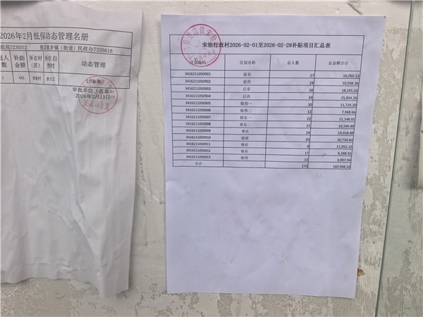 涡阳县楚店镇宋徐村2026年2月份财政惠民惠农补贴公示、资料留存