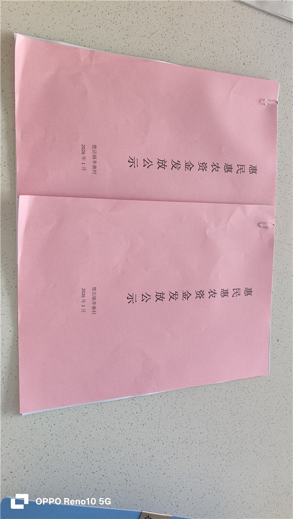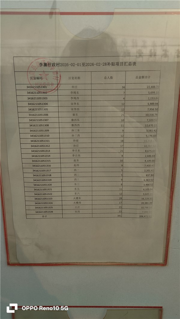 涡阳县楚店镇李寨村2026年2月份财政惠民惠农补贴公示、资料留存