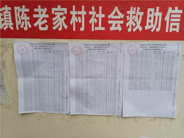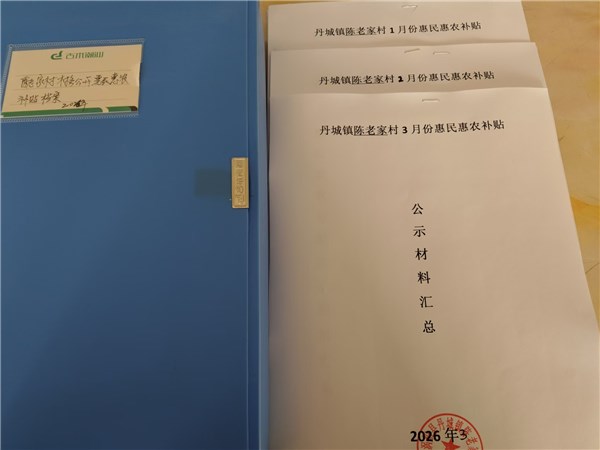 丹城镇陈老家村2026年1-3月财政惠民惠农资金补贴公示资料留存情况