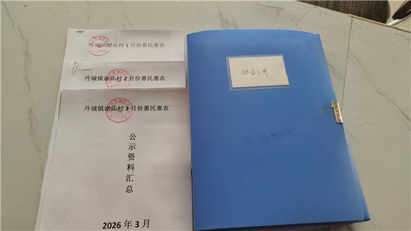 丹城镇谢庙村2026年1-3月财政惠民惠农资金补贴公示资料留存情况