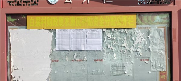 丹城镇白果村2026年1-3月财政惠民惠农资金补贴公示资料留存情况