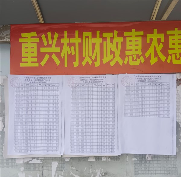 丹城镇重兴村2026年1-3月财政惠民惠农资金补贴公示资料留存情况