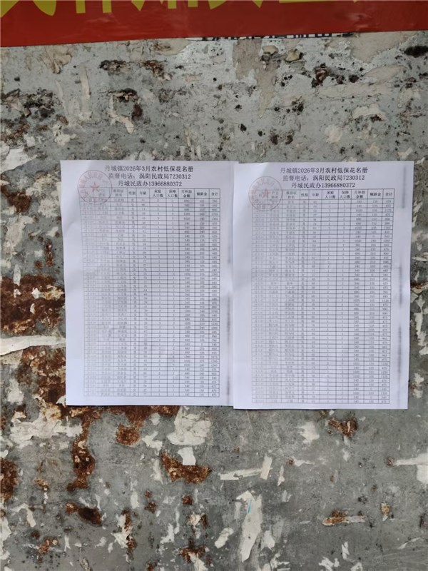 丹城镇红旗村2026年1-3月财政惠民惠农资金补贴公
