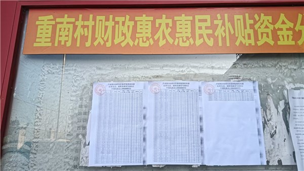 丹城镇重南村2026年1-3月财政惠民惠农资金补贴公示资料留存情况