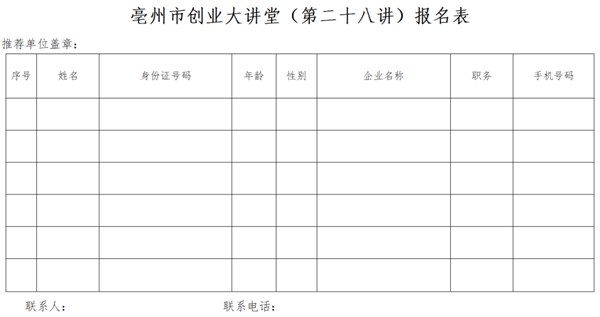 根据《亳州市人民政府办公室关于印发亳州市推进全民创业打造创业型城市十条扶持政策的通知》(亳政办〔2022〕14号)精神,为推动“创业亳州”行动落地落实,深入开展“亳州老乡,请您回家”助您创业活动,培养、提升企业家的创新思维、创业素质,市人力资源社会保障局拟于近期举办亳州市创业大讲堂第二十八讲,现就有关事项通知如下: