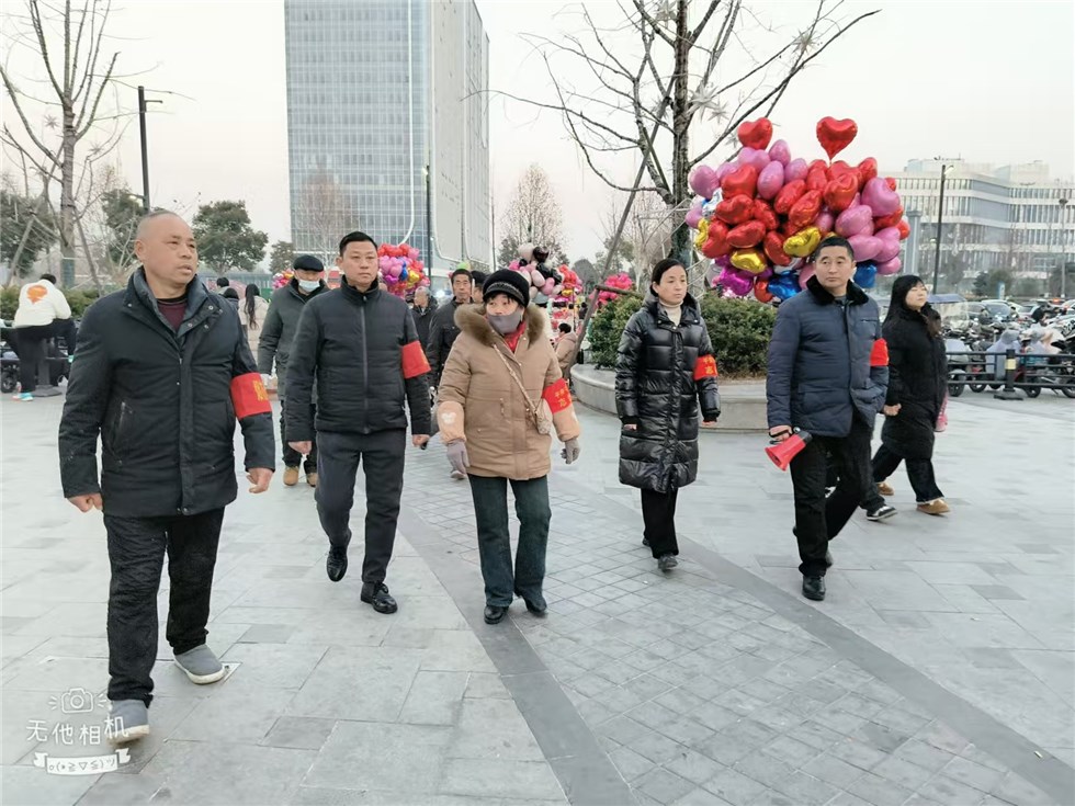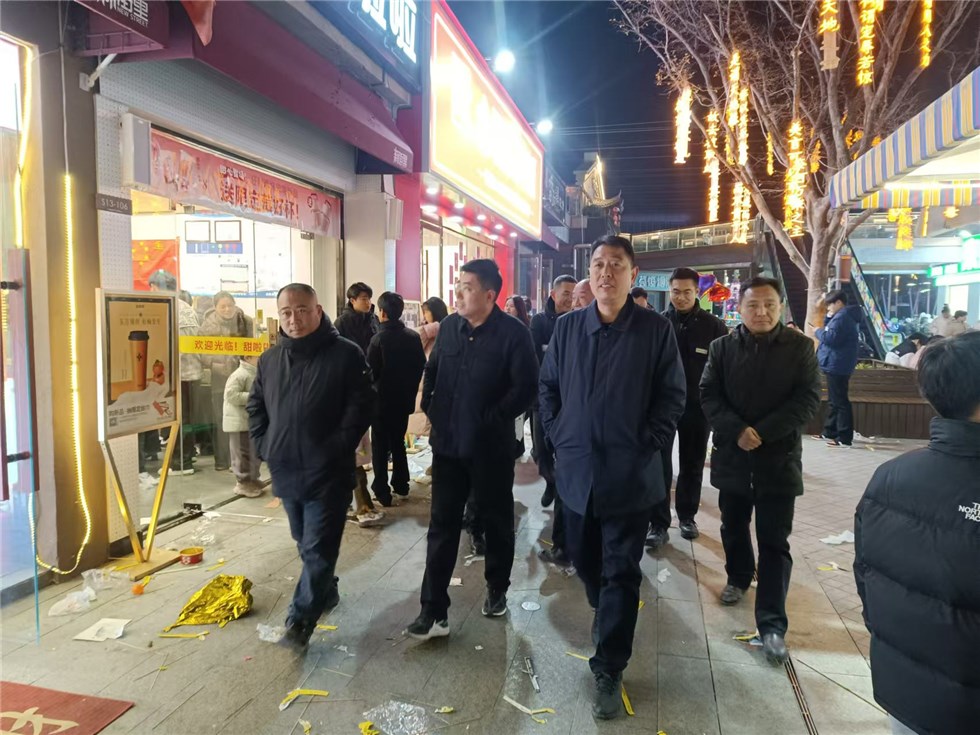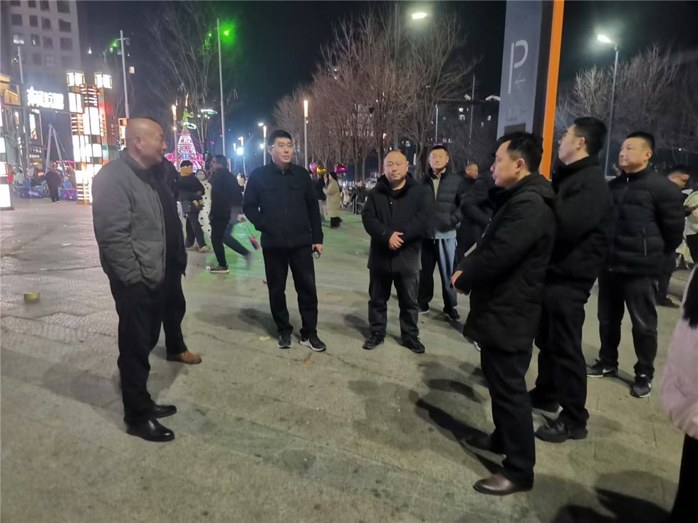 12月31日晚,星园街道党政领导班子集体下沉商业街区,督察烟花禁燃禁放工作。