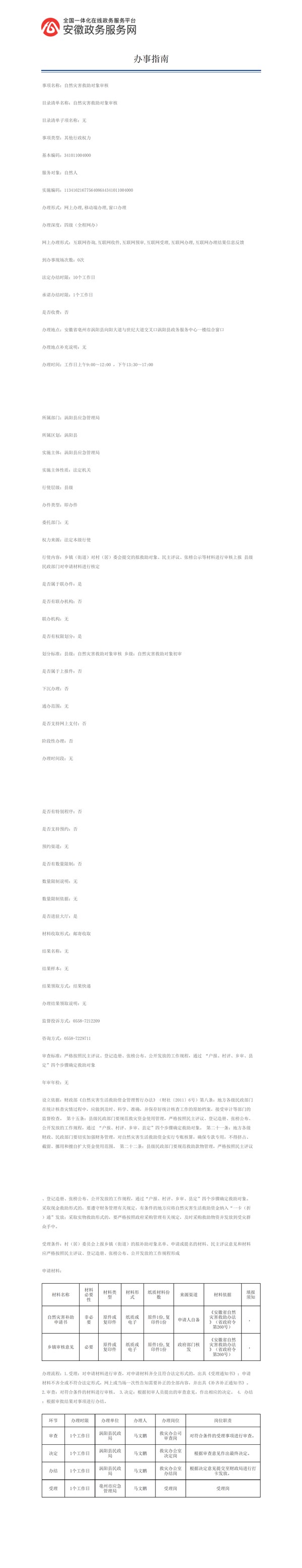 自然灾害救助对象审核办事指南