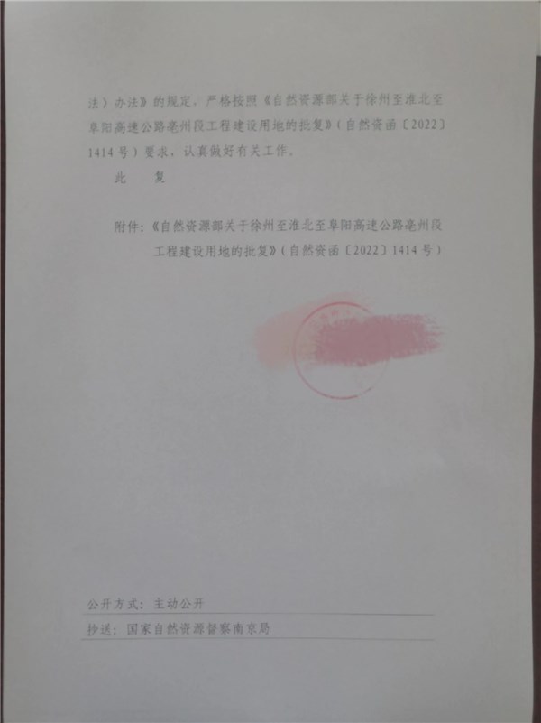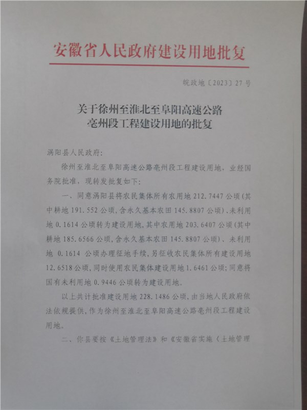 | 名称: | 关于徐州至淮北至阜阳高速公路亳州段工程建设用地的批复 |