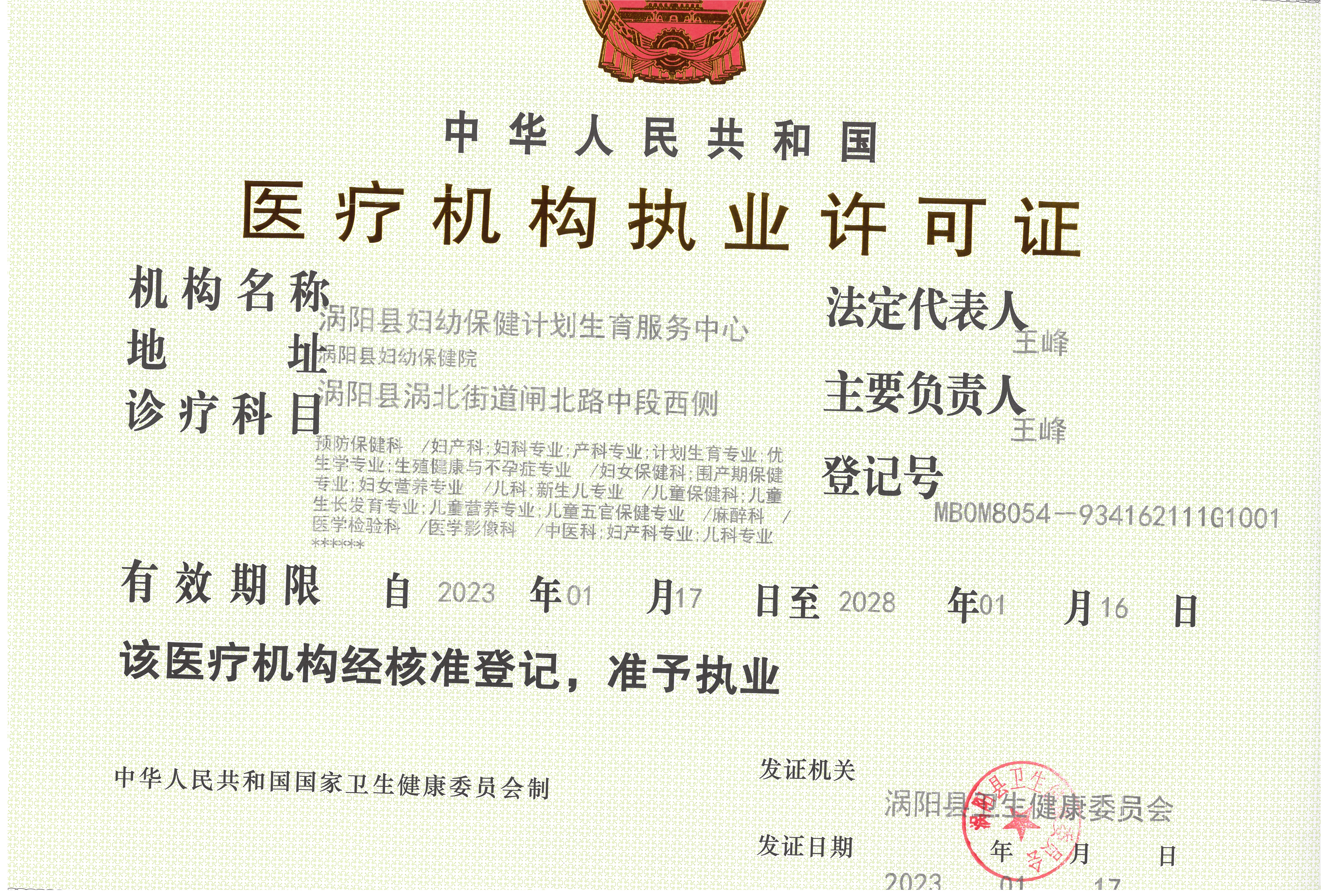 | 名称: | 涡阳县妇幼保健院《医疗执业许可证》正本 |