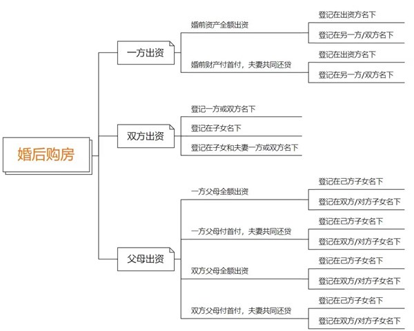 从房屋出资来源角度看,可以分为夫妻一方出资、夫妻双方共同出资、夫妻一方父母出资、夫妻双方父母出资等情形。