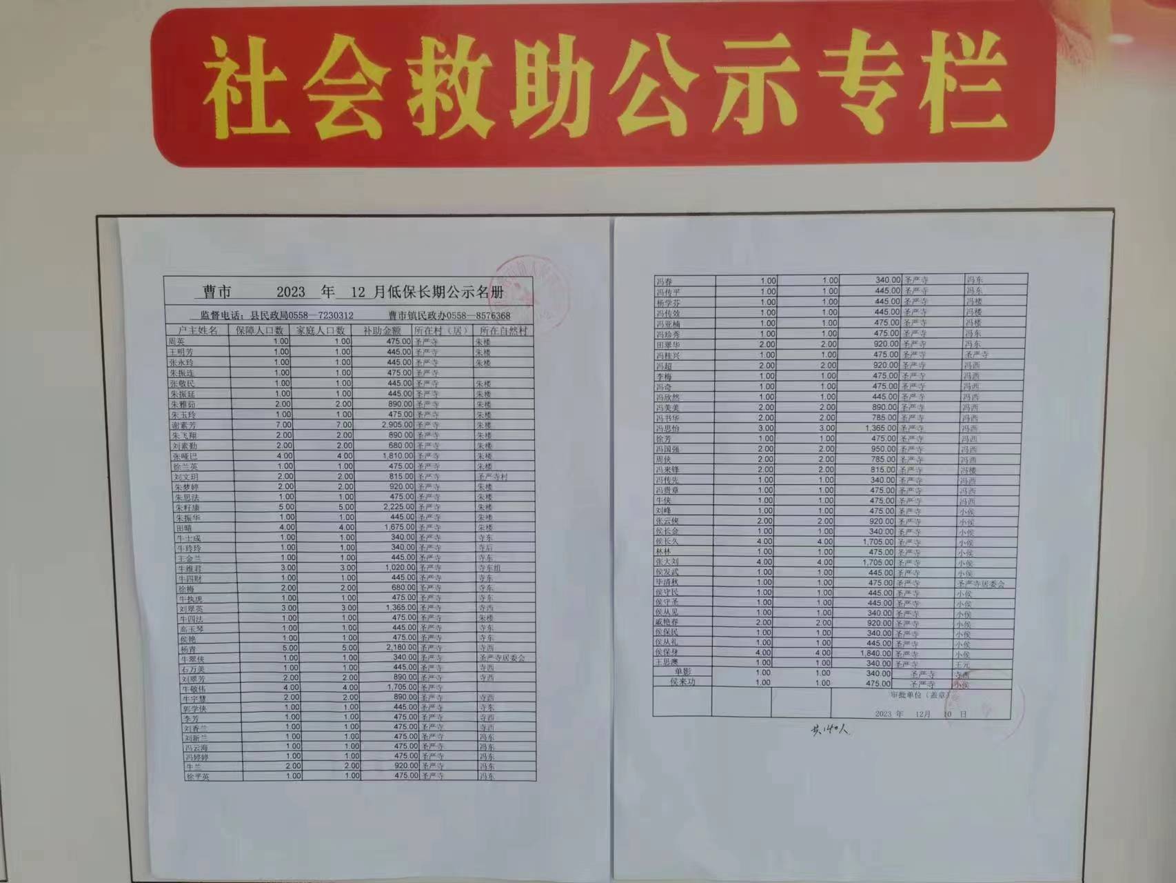 | 名称: | 涡阳县曹市镇圣严寺居委会2023年1-12月惠民惠农资金公示资料留存情况 |